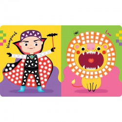 Książeczka do wyklejania mozaiki. Dzięki temu dzieci uczą się porządkować, nazywać kształty i kolory. Książki doskonale kształtują i rozwijają wyobraźnię. Przy wyklejaniu dzieci potrafią się wyciszyć i bardziej skupić na wykonywanym zadaniu.