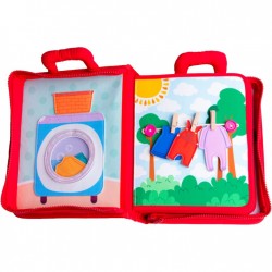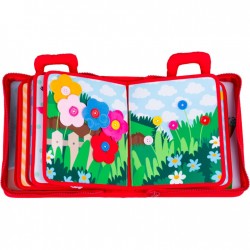 Książeczka zręcznościowa. Nauka praktycznych umiejętności. Na stronach książeczki kryją się różne zadania do wykonania. Maluchom przyjdzie się zmierzyć ze sznurowaniem buta, wiązaniem tasiemki, przyczepianiem klamerek czy zapinaniem paska. Zróżnicowane faktury poszczególnych elementów rozwijają dodatkowo umiejętności poznawcze dziecka, oddziałując na jego zmysły dotyku i wzroku. Książeczka zapinana jest na zamek błyskawiczny. Praktyczne uchwyty pozwolą zabrać ją ze sobą dosłownie wszędzie, aby mogła towarzyszyć małym spryciarzom w każdej sytuacji.