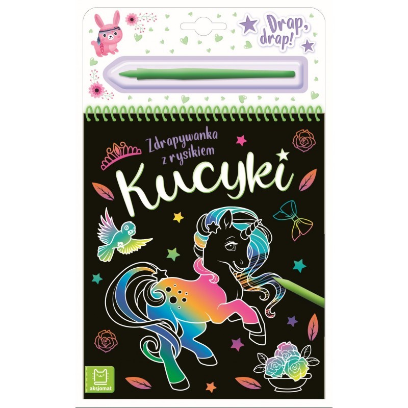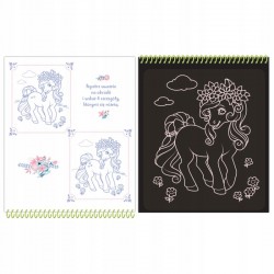 Użyj rysika jak magicznej różdżki, a na pokrytych czernią stronach wyczarujesz kolorowy świat kucyków. Zdrapywanka to zabawa, która rozwija kreatywne myślenie i wyobraźnię. Przygotowuje rączkę do nauki pisania. Zapewnia długie godziny zabawy, uczy koncentracji i dokładności, idealna do zabrania w podróż i na plażę. Oprawa twarda, stron 10.