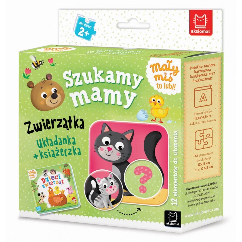 Zestaw składa się z książeczki „Dzieci zwierząt” i 12-elementowej układanki. Zabawa polega na odpowiednim dopasowaniu małego zwierzątka do jego mamy. Piękne ilustracje gwarantują, że z tą książeczką i układanką dzieci przyjemnie spędzą czas. Dobra i pełna miłości atmosfera zabawy sprawia, że maluchy szybko zapamiętują nazwy zwierząt, uczą się naśladować ich odgłosy, rozwijają spostrzegawczość, porównując zwierzątka i wyróżniając ich charakterystyczne cechy. Mały miś – dziecięcy bohater – zaprasza wszystkie maluchy do zabawy i wzbogacenia wiedzy. Mały miś to lubi!