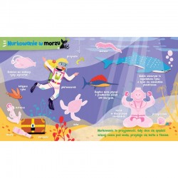 W albumie z naklejkami „W morzu” dziecko znajdzie bogate w szczegóły ilustracje, liczne naklejki, krótkie teksty oraz podpisy i ciekawostki zachęcające do czytania.