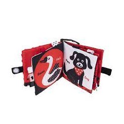 Ta materiałowa książeczka przybliży maluchom wiejskie zwierzątka, ucząc ich nazw. Na dziesięciu sensorycznych stronach znajdziemy podobiznę zwierzaka wraz z jego nazwą w języku polskim oraz angielskim. Okładka książeczki szeleści, co uatrakcyjnia zabawę i stymuluje zmysły malucha, a bezpieczne lusterko, w które została wyposażona, posłuży do samopoznania dziecka. Praktyczna zawieszka na rzep ułatwi zaczepianie książeczki w dowolnym miejscu. Produkt przeznaczony dla dzieci od dnia narodzin.