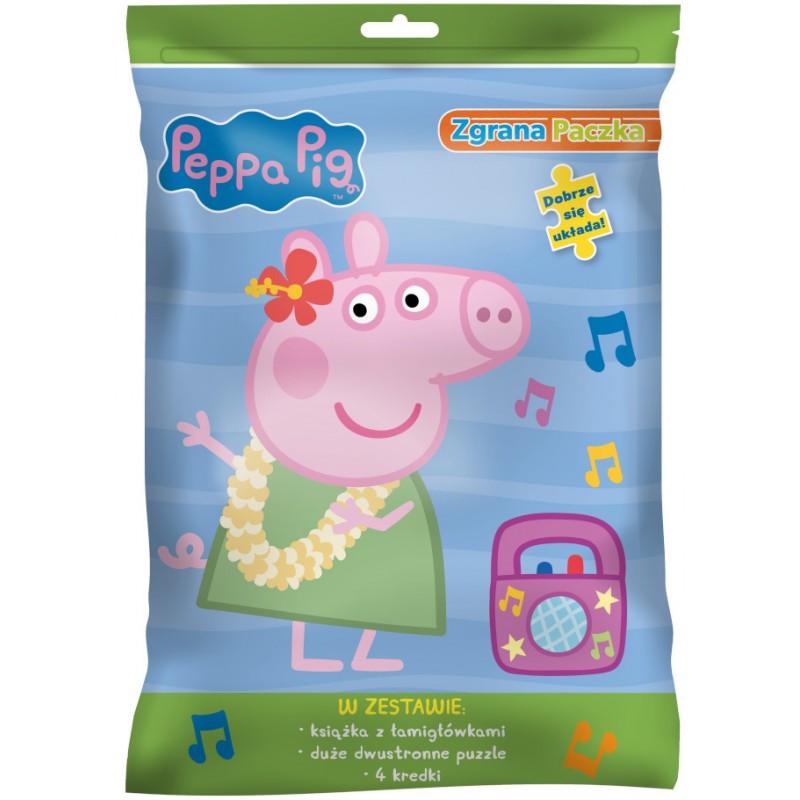 Megapaczka pełna niespodzianek dla wszystkich, którzy lubią sympatyczną świnkę Peppę. Zestaw zawiera książkę z mnóstwem zadań i łamigłówek, kolorowe kredki oraz dwustronne puzzle. Jeden z obrazków układanki można pokolorować według własnego pomysłu. Zgrana Paczka naprawdę dobrze się układa. Wiek 3+.