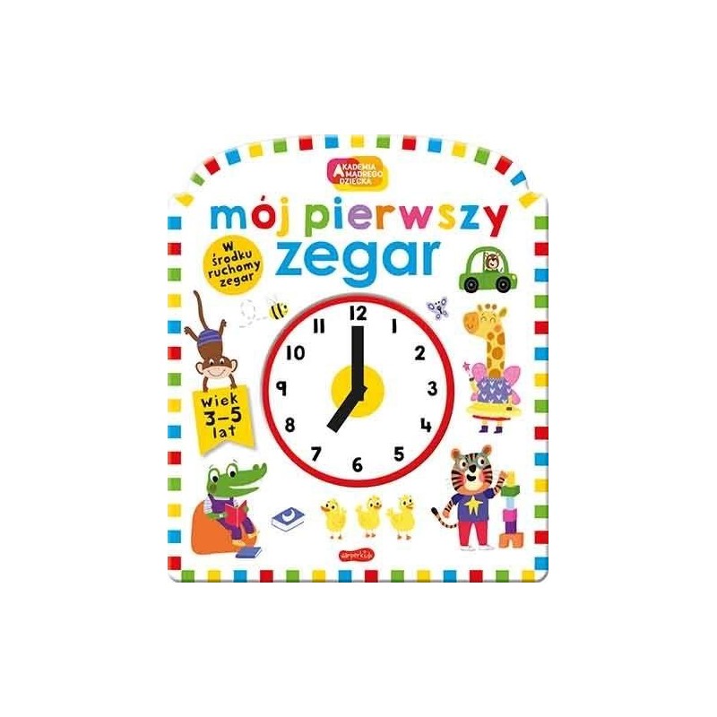 Mój pierwszy zegar. Akademia mądrego dziecka" świetnie wspiera naukę odczytywania godzin poprzez zamieszczony w niej zegar z ruchomymi wskazówkami. Za pomocą czwórki przyjaciół, którzy są bohaterami książki, dziecko w łatwy sposób nauczy się, jak wygląda typowy dzień oraz może ćwiczyć dopasowanie odpowiednich godzin na zegarze. W książeczce znajdziemy także wiele zadań oraz zagadek, które dodatkowo ćwiczą spostrzegawczość. Poprzez wspólną zabawę oswajamy przedszkolaka z godzinami.