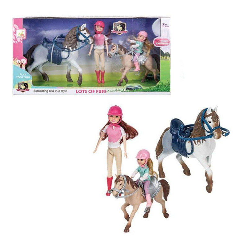 Zestaw zawiera dwie lalki (duża i mała) z dwoma konikami (dużym i kucykiem). Wspaniałe zabawki, dla wielbicieli lalek oraz figurek koników!