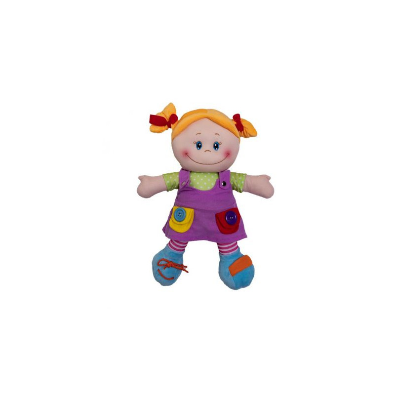 Śliczna przytulanka o długości 46 cm to doskonała pomoc w nauce samodzielnego ubierania się od najmłodszych lat.
