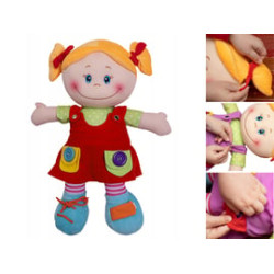Pomoże opanować tak trudne umiejętności jak zapinanie guzików, zapinanie nap czy bucików na rzepy oraz wiązanie sznurowadeł i wstążeczki na włosach.