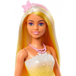 Lalki księżniczki Barbie o baśniowym wyglądzie pozwalają dzieciom odkrywać świat magicznych opowieści i wymyślać niesamowite przygody. Te lalki zachwycają pięknymi kolorami! Każda z nich ma barwne pasemka we włosach, śliczny gorset, spódniczkę z nadrukiem, opaskę, naszyjnik i buciki. Te czarujące lalki księżniczki Barbie inspirują do wymyślania magicznych opowieści.