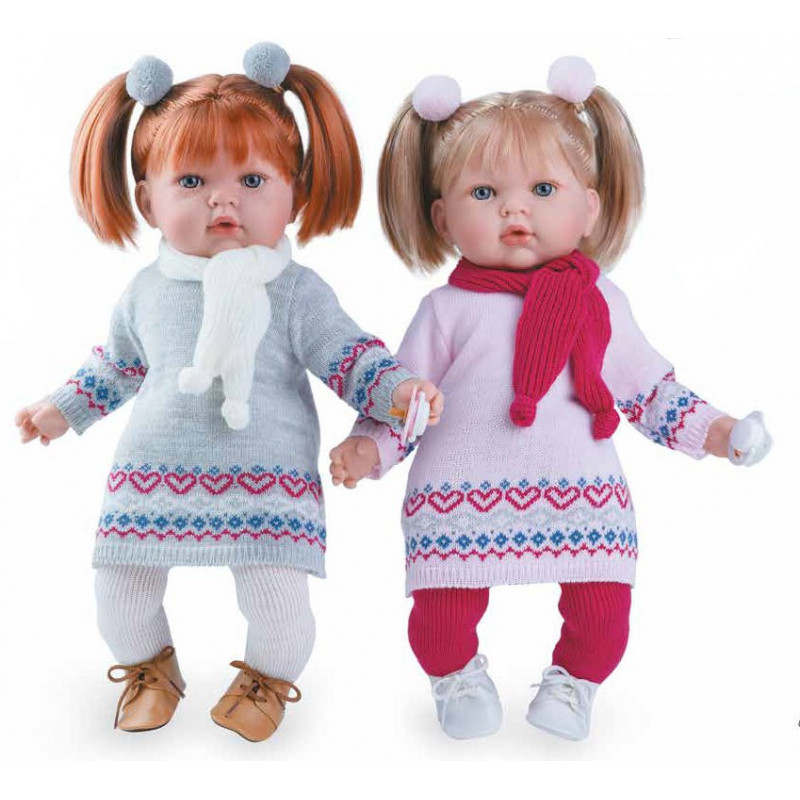 Lalka posiada miękki szmaciany tułów i winylowe nóżki i rączki oraz prawdziwe rzęsy. Ma śliczne ubranko oraz delikatnie pachnie. Może płakać, w zestawie ze smoczkiem. Idealny prezent dla każdej małej dziewczynki. Wysokość 45cm Seria składa się z 2 różnych modeli. Cena dotyczy jednej sztuki. Zabawki wysyłamy losowo. Jeśli zależy Ci na konkretnym modelu zaznacz to w zamówieniu.