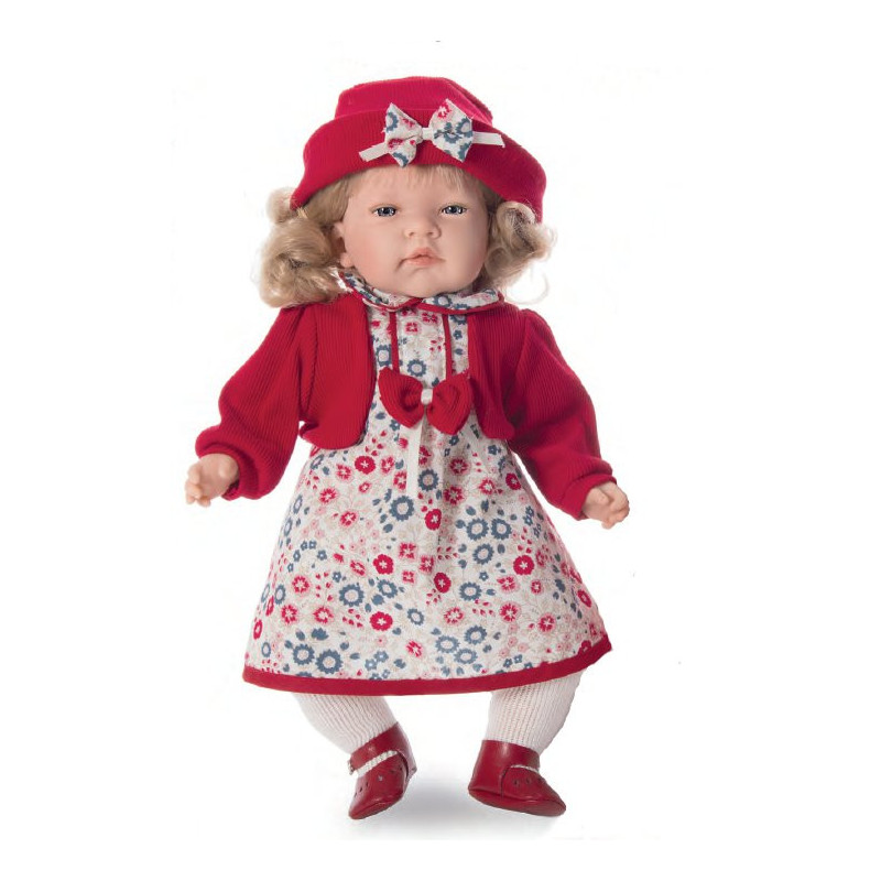 Lalka posiada miękki szmaciany tułów i winylowe nóżki i rączki oraz prawdziwe rzęsy. Ma śliczne ubranko oraz delikatnie pachnie. Może śmiać się po naciśnięciu brzuszka. Idealny prezent dla każdej małej dziewczynki. Wysokość 45 cm