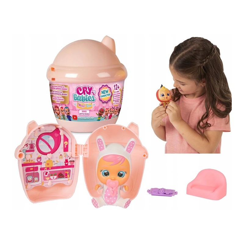 Cry Babies Magic Tears S1 firmy TM Toys. Mini laleczki Cry Babies z domkiem i akcesoriami. Nakarm lalkę i naciśnij jej brzuszek a zobaczysz jak płacze prawdziwymi łzami. W serii znajduje się aż 24 różne laleczki w domkach w 4 różnych kolorach. Zbierz całą serię. Seria składa się z kilku różnych modeli. Cena dotyczy jednej sztuki. Zabawki wysyłamy losowo. Wiek 3+ Uwaga:Nieodpowiednie dla dzieci w wieku poniżej 3 lat ze względu na ryzyko udławienia małymi elementami.