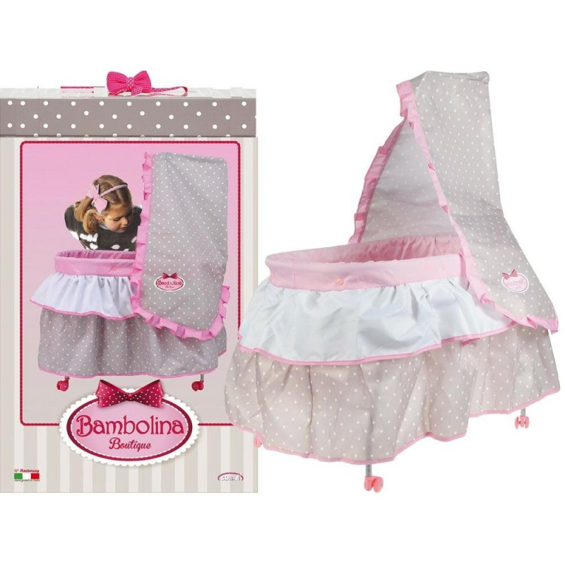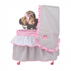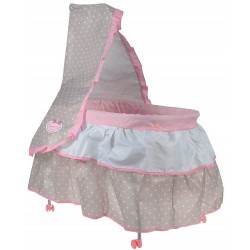 Łóżeczko dla lalek Bambolina z torbą firmy Anek.Łóżeczko wykonane z wysokiej jakości materiałów ze zdejmowanym baldachimem. Jest lekkie, a dzięki kółkom można je łatwo przesunąć. W zestawie z kompletem pościeli.