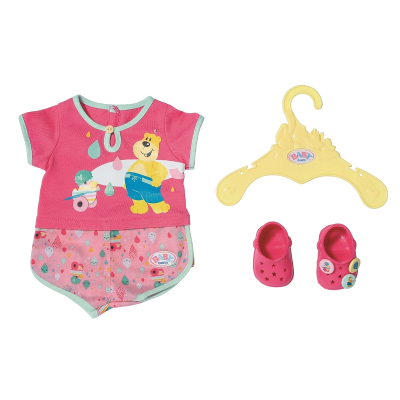 Piżamka z bucikami Baby Born firmy Zapf. Zestaw dla lalki Baby Born piżamka, buciki oraz wieszaczek. Wykonane z najwyższej jakości materiałów. Wysokość lalki 43 cm Wiek 3+