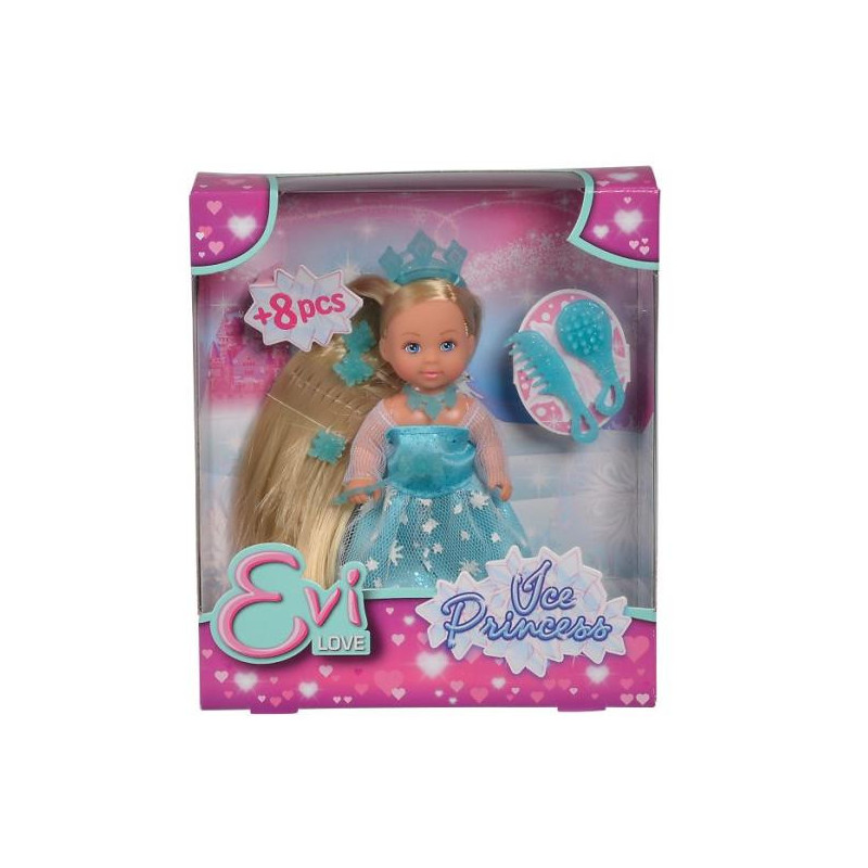 Evi Lodowa księżniczka firmy Simba.Zestaw zawiera laleczkę Evi w balowej sukni i tiarze oraz akcesoria do czesania i stylizacji jej pięknych długich włosów. Całość wykonana z wysokiej jakości materiałów.Wiek 3+