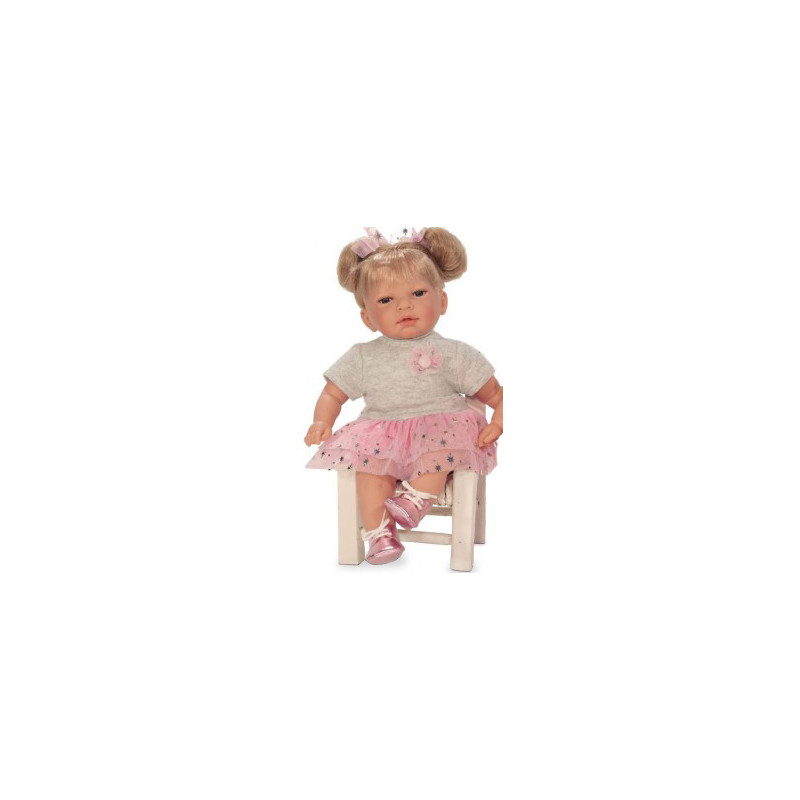 Lalka NINES 5001 posiada miękki szmaciany tułów i winylowe nóżki i rączki oraz prawdziwe rzęsy. Ma śliczne ubranko oraz delikatnie pachnie. Może płakać, w zestawie ze smoczkiem. Idealny prezent dla każdej małej dziewczynki.
