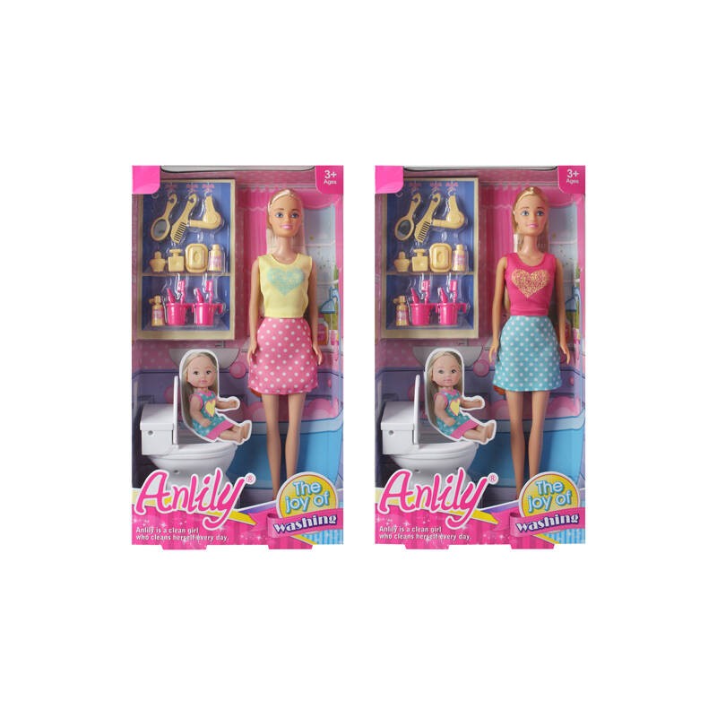 Lalka Anlily 29 cm. Akcesoria: toaleta, lusterko, grzebyk, suszarka, mydło, perfum, kubek, szczoteczka do zębów, pasta do zębów.