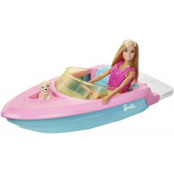 Lalka Barbie z motorówką oraz psem. Lalka ma na sobie strój kąpielowy oraz kamizelkę ratunkową. Właśnie wyrusza na wspaniałą przygodę wraz z pupilem. Motorówka, która unosi się z lalką na wodzie da dużo radości dzieciom podczas zabawy. Motorówka ma miejsce na trzy lalki, więc zabawa z przyjaciółmi może być jeszcze lepsza. Lalka nie stoi samodzielnie.
