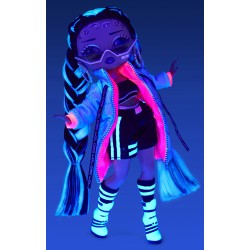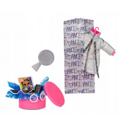 W zestawie: modna lalka, ubrania, buty, akcesoria, pudełko na kapelusze, światło ultrafioletowe, szczotka do włosów, torba na ubrania, naklejka, wieszak, stojak na lalkę, opakowanie wielokrotnego użytku do zabawy. Laleczka L.O.L. Surprise Dance Dance Dance O.M.G. B-Gurl wraz z 15 niespodziankami. Ma oszałamiające rysy, piękne włosy i własny bajeczny styl.