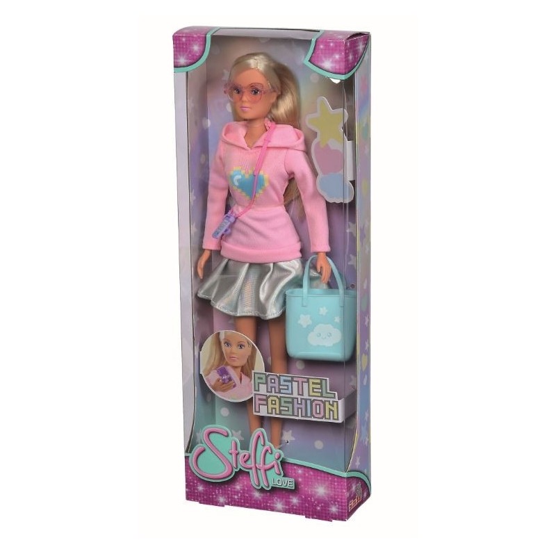 Steffi w zgodzie z najgorętszymi, wiosennymi trendami jest ubrana w pastelową bluzę z kapturem z modnym pikselowym nadrukiem, ma telefon z uchwytem na palec, który jest przewieszony przez ramię na modnym mocowaniu, oczywiście stylizację dopełnia shoppingowa torba i niebieskie włosy, wysokość lalki. Zabawa lalkami wpływa na rozwój wrażliwości i opiekuńczości. Wiek 3+.