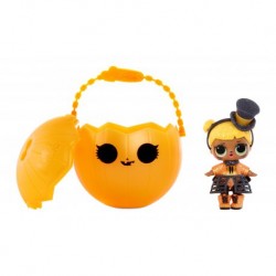 Wyjątkowa seria limitowana Halloween Spooky Supreme. Fioletowa kula, w jej wnętrzu wspaniała, wyjątkowa laleczka Baby Cat w przebraniu kotka. Ubrana została w pomarańczowe ubranko, a na jej głowie znajduje się zabawny kapelusik. Do zestawu dołączono również buteleczkę. Każda z warstw kuli kryje 8 różnych niespodzianek oraz rebus do rozwiązania, które dodatkowo uatrakcyjnią zabawę! Sama kula również jest niespodzianką - może zmienić się w super Halloweenową torebkę, w której zabierzesz swoją LOL gdzie tylko zechcesz!