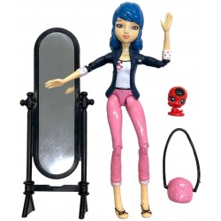 Figurka Marinette. Dzięki niewielkim rozmiarom możesz w łatwy sposób przetransportować ja w dowolne miejsce i bawić się wspólnie z przyjaciółmi. Figurka została wykonana z wysokiej jakości materiałów z dbałością o najdrobniejsze szczegóły. W zestawie znajdują się akcesoria takie jak magiczne stworzenie, różowa torebka oraz duże lustro, które dodatkowo urozmaicą zabawę. Zabawka rozwija wyobraźnię, kreatywność. Wiek 4+.