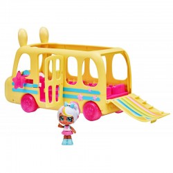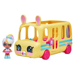 Czy to uroczy, żółty królik, czy pojazd przyjaciółek Kindi Kids Mini? Autobus, który zawiezie laleczki do szkoły i na wycieczkę ma sterczące, królicze uszy, uśmiechnięty pyszczek i słodkie oczka. Po naciśnięciu na jego nosek otwierają się boczne drzwi. Natomiast tylne drzwi autobusu po otwarciu zmieniają się w tęczową zjeżdżalnię. Autobus pomieści aż 7 laleczek Kindi Kids Mini, które podczas jazdy rytmicznie poruszają główkami. Żółty autobus Kindi Kids wykonany został z wysokiej jakości, atestowanych materiałów. Jest bezpieczny w użytkowaniu i odporny na uszkodzenia. W zestawie znajdziesz jedną unikatową laleczkę Marsha Mello, w całkowicie nowej stylizacji.