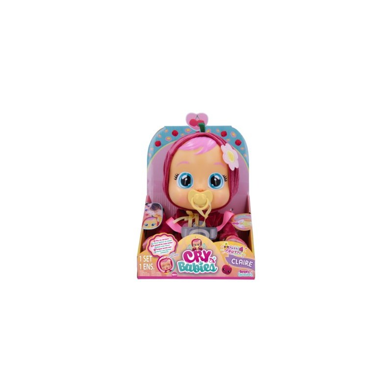 Cry Babies to śliczne owocowe bobaski, które potrzebują kogoś kto je pokocha! Przytul je i daj im smoczek a od razu się uspokoją. Cry Babies płaczą prawdziwymi łzami wydając przy tym autentyczne odgłosy płaczącego malucha. Aby laleczka zaczęła płakać wystarczy wlać wodę do specjalnego pojemnika umieszczonego z tyłu jej głowy i nacisnąć przycisk znajdujący się poniżej lub włączyć laleczkę i wyciągnąć smoczek z jej ust.