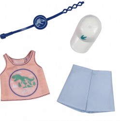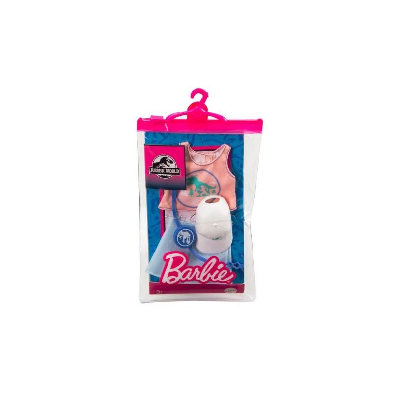 Zestaw ubranek dla Barbie z grafiką filmu Jurrasic World. Pasuje na lalki Barbie 30 cm. W komplecie: strój i dodatki. Łącz ubranka dla lalek Barbie, aby pobudzić wyobraźnię i odgrywać różne opowieści (zestawy sprzedawane oddzielnie w zależności od dostępności).