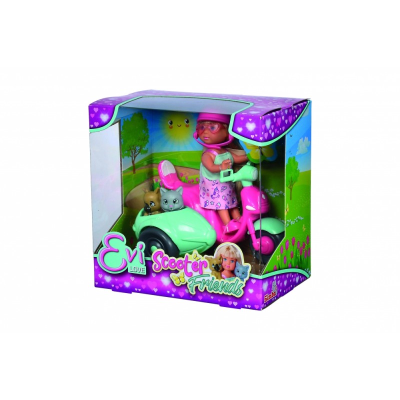 Evi Love 105733566 Laleczka na skuterze z figurkami pieska i kotka, 12 cm