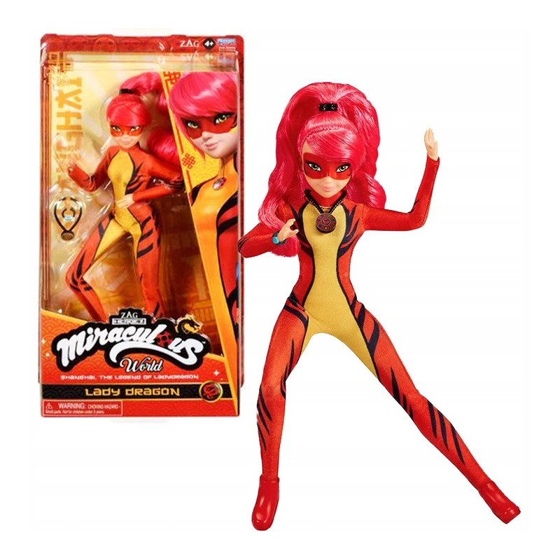 Kto zna bajkę o Czarnym Kocie i Biedronce temu z pewnością spodoba się lalka Lady Dragon. Teraz każda dziewczynka będzie miała możliwość zabawy z popularnymi bohaterami w swoim domu. Lalka ubrana jest w czerwono-pomarańczowy kombinezon. Posiada naszyjnik oraz bransoletkę.
