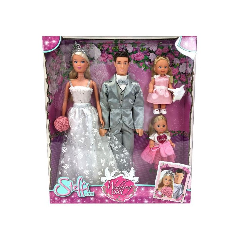 Zestaw zawiera cztery lalki: Kevina i Steffi oraz dwie dziewczynki. Parze towarzyszą 2 małe dziewczynki, jedna z koszyczkiem na kwiaty, a druga z aparatem. Zestaw dzięki stonowanej kolorystyce prezentuje się elegancko i stylowo Steffi jest ubrana w piękną białą suknię, w ręku trzyma bukiet róż. Kevin ubrany jest w srebrny elegancki garnitur.