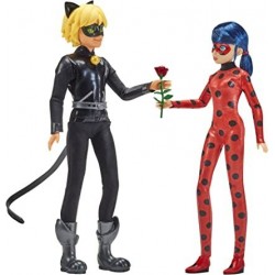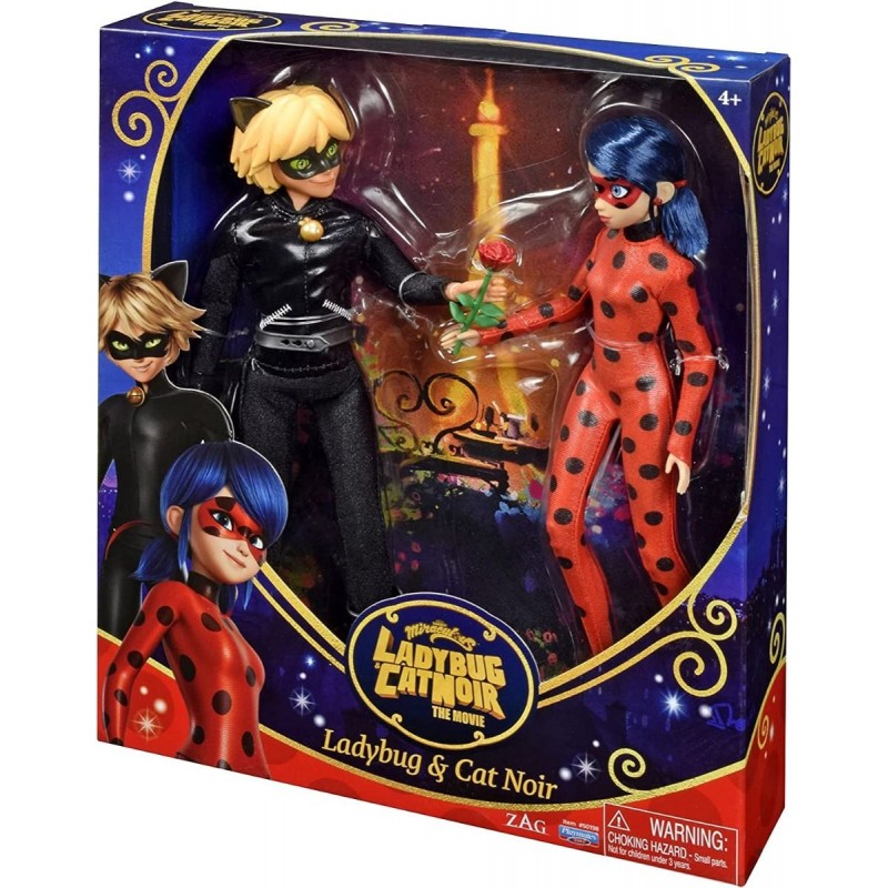 Obie lalki zostały wykonane z wysokiej jakości materiałów z dbałością o najdrobniejsze szczegóły. Dzięki ruchomym elementom, Twoje dziecko może ożywić swoich ulubionych bohaterów oraz ponownie przeżywać ratowanie Paryża. Postać Czarnego Kota jest odwzorowana z dużą dbałością o najmniejsze szczegóły i posiada wiele charakterystycznych cech superbohatera. Lalka ma blond włosy, czarny kombinezon z ogonem, maskę z parą kocich uszu i czarne buty, a jej szyję zdobi złoty dzwonek. Postać Biedronki ma błyszczące, granatowe włosy spięte w kucyki, czerwony strój w czarne kropki, kolczyki oraz maskę, która pomaga Marinette zachować anonimowość. W zestawie znajduje się również róża!
