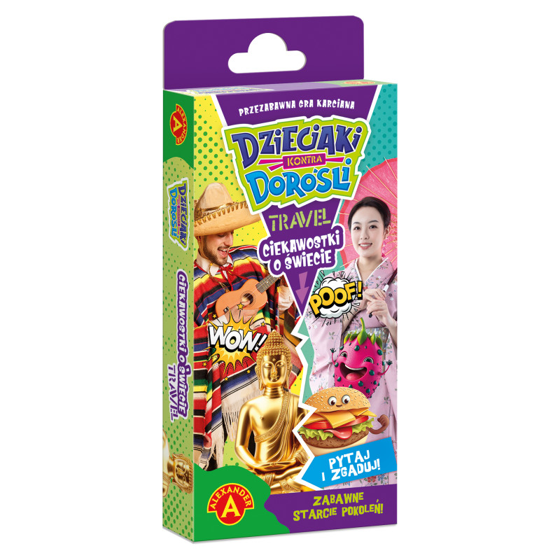 "Dzieciaki Kontra Dorośli – Ciekawostki o Świecie Travel" to gra planszowa, która zapewni świetną zabawę całej rodzinie. Dzieci rywalizują z dorosłymi, odpowiadając na podchwytliwe pytania dotyczące światowych ciekawostek. Dzięki dwóm oddzielnym zestawom kart z pytaniami o innym poziomie trudności dedykowanym dzieciom oraz rodzicom, szanse na wygraną są takie same dla obu drużyn.