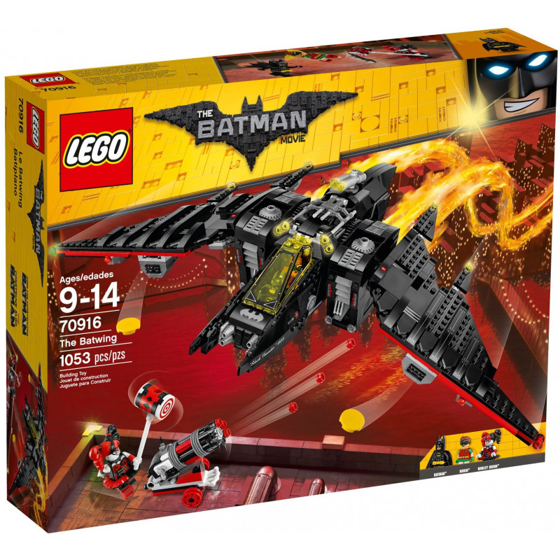 Zestaw klocków LEGO 70916 Batwing z serii The Lego Batman Movie. Zestaw pozwala na zbudowanie niezwykłej sceny z filmu. Dodatkowo załączono 3 minifigurki oraz akcesoria. Ilość elementów 1053Wiek 9+
