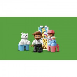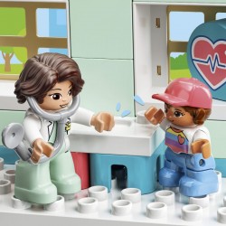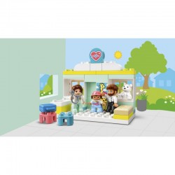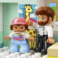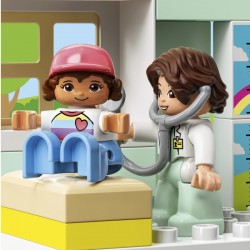 Dzieciom zainteresowanym medycyną spodoba się wesoła przychodnia i sympatyczna lekarka. Ten wszechstronny zestaw świetnie przygotuje dzieci w wieku od 2 lat na wizytę u lekarza. Pokaż dzieciom, co dzieje się w przychodni lekarskiej. Sympatyczna pani doktor słucha bicia serca dziecka elastycznym stetoskopem (przyczepionym do figurki na stałe), a na koszulce dziecka nadrukowane jest serduszko. W gabinecie wisi miarka wzrostu z żyrafą i stoi umywalka do mycia rąk oraz krzesła, na których może siąść tata. Zestaw pokazuje dzieciom, jak ważne jest dbanie o zdrowie i troskliwość wobec innych, dzięki czemu doskonale rozwija zdolności społeczne oraz emocjonalne maluchów. Dzięki zabawkom LEGO DUPLO rodzice mogą uczestniczyć w każdym etapie rozwoju swoich maluchów i zachęcać dzieci do swobodnej zabawy, wyrażania siebie oraz wesołego odkrywania świata.
