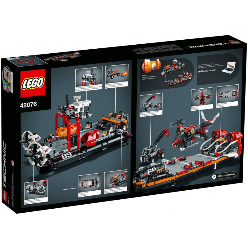 Zestaw klocków LEGO 42076 Poduszkowiec z serii Technic.Zestaw zawiera 1020 elementów potrzebnych do zbudowania poduszkowca.Model ma funkcję 2 w 1 możesz go przebudować w inny pojazd.Zabawka posiada ruchome elementy.Wiek 9+