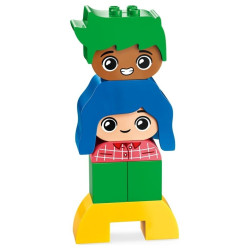 Zawiera on cztery różne postacie, z czego każda ma dwie różne miny, aby przedszkolaki mogły zmieniać ich nastroje, jednocześnie wyrażając swoje uczucia. Ciekawskie maluchy dobrze wiedzą, że ludzie różnią się pod względem wyglądu, a te zabawki pozwolą im lepiej poznać różnice między postaciami. Układając kolorowe klocki i tworząc figurki, dzieci rozwijają swoją kreatywność i koordynację wzrokowo-ruchową. Przy tym mogą też ćwiczyć dopasowywanie kolorów, wybierając włosy i ubrania dla postaci lub przebudowując figurki w kontrastowych kolorach.