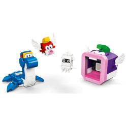 Cztery figurki postaci Super Mario do zbudowania z klocków — usadź figurkę LEGO Mario, LEGO Luigi lub LEGO Peach (figurki nie są częścią zestawu) na grzbiecie Dorriego i pokonaj Cheep Cheepa, Cheep Chompa i Bloopera