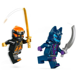 Dwie minifigurki NINJAGO — zestaw zawiera Cole’a z małą kataną oraz wojownika wilczej maski z mieczem, dzięki czemu dzieci mogą odgrywać bitwy z drugiego sezonu serialu NINJAGO Powstanie smoków