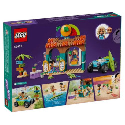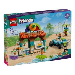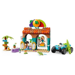Zestaw zawiera budkę z koktajlami do zbudowania, łazik plażowy, a także minilaleczki LEGO Friends Novy i Niko. Dzieci mogą tworzyć wiele różnych smaków koktajli, łącząc składniki, a następnie mieszając je w blenderze. Mogą bawić się, że Nova i Niko odpoczywają przy koktajlu na huśtawce, a następnie wyruszają na wycieczkę łazikiem plażowym. Ten zestaw konstrukcyjny LEGO zawiera mnóstwo akcesoriów pobudzających wyobraźnię, w tym menu, deskę surfingową, kamizelkę ratunkową, wideorejestrator i drogowskaz.