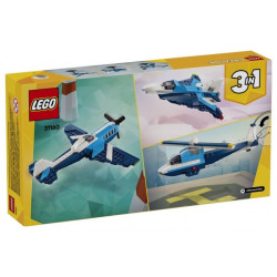 Dzięki zestawowi LEGO Creator 3 w 1 Statek powietrzny: samolot wyścigowy (31160) na siedmiolatków i starsze dzieci czekają superszybkie przygody w przestworzach. Model samolotu ma obrotowe śmigło z przodu i ruchome koła, dzięki czemu może jeździć po ziemi, a także podstawkę z klocków do ekspozycji. Dzieci mogą wybrać jeden z trzech różnych niezwykłych pojazdów: samolot z obrotowym śmigłem i ruchomymi kołami, odrzutowiec z ruchomymi kołami i helikopter z obrotowym śmigłem. Każdy model można ustawić na podstawce zbudowanej z klocków. Zestaw będzie wspaniałym prezentem dla dzieci, które lubią odgrywać pomysłowe historie pełne akcji.