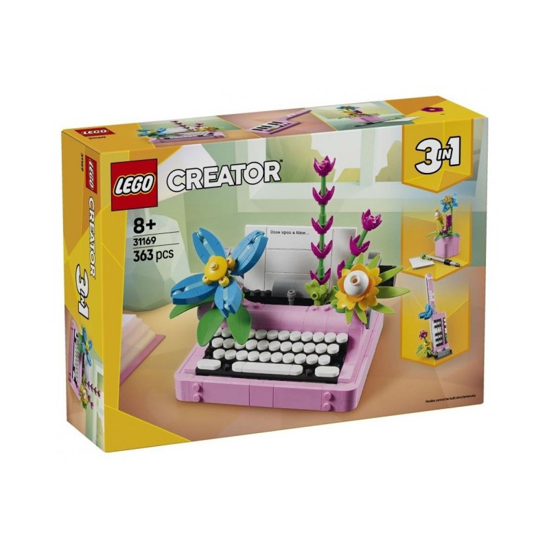 Podaruj ośmioletnim i starszym fanom kwiatów, sztuki i designu ten zestaw LEGO Creator 3 w 1 Maszyna do pisania z kwiatami (31169). Ta miniaturowa maszyna do pisania jest ozdobiona czterema kolorowymi kwiatami z klocków, obejmuje ruchomą klawiaturę i wałek oraz arkusz papieru zbudowany z klocków.