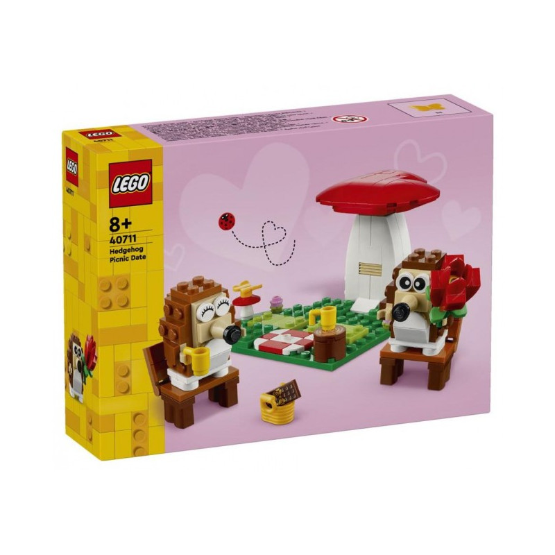 Uczcij wyjątkową okazję, budując uroczy zestaw LEGO Piknik pary jeżyków (40711) pełen ciekawych funkcji. Ośmiolatki i starsze dzieci mogą zbudować, ustawić na półce lub bawić się dwoma modelami jeży, które siedzą pod grzybem w kształcie serca na serduszkowej podstawce.