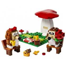 Ten kolorowy zestaw LEGO jest pełen ciekawych elementów. Jeże można zdjąć z ławki i postawić lub usadzić na kocu piknikowym w otoczeniu róży, filiżanek, ciasta i żółtego motyla. Ponadto jeżyki mogą trzymać filiżanki w łapkach.