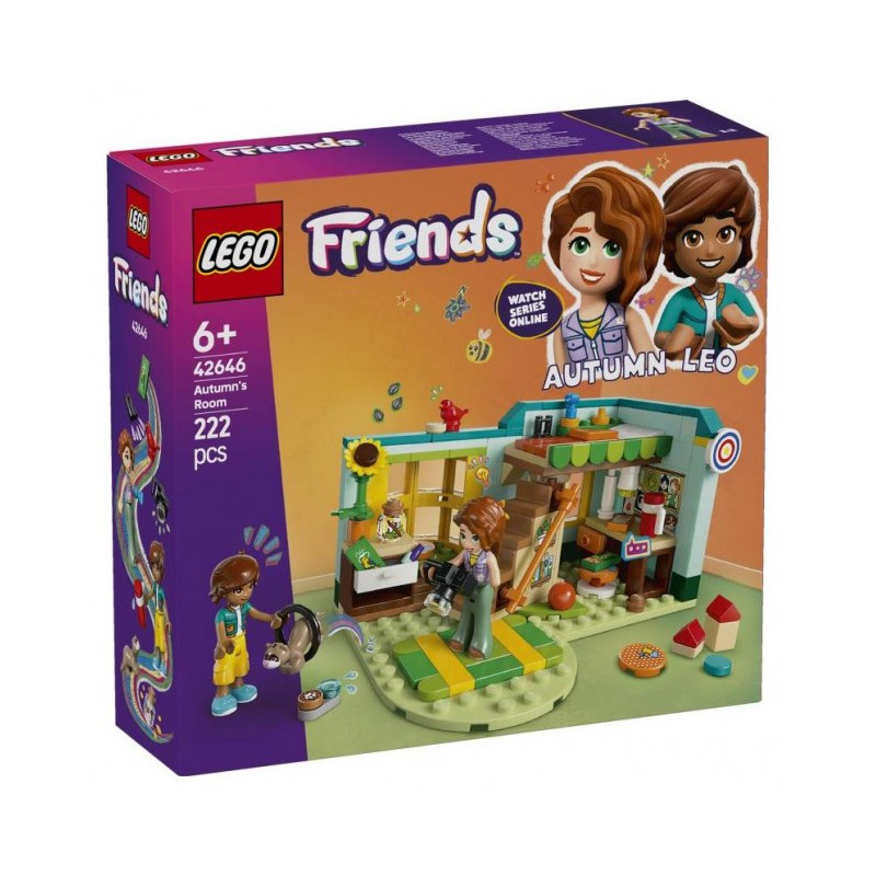 Ten zestaw do zabawy dla sześcioletnich i starszych miłośników przyrody umożliwia odgrywanie historii o przyjaźni. LEGO Friends Pokój Autumn (42646) zawiera pokój do zbudowania, plac zabaw, minilaleczki Autumn i Leo, figurkę fretki oraz figurkę ptaka.