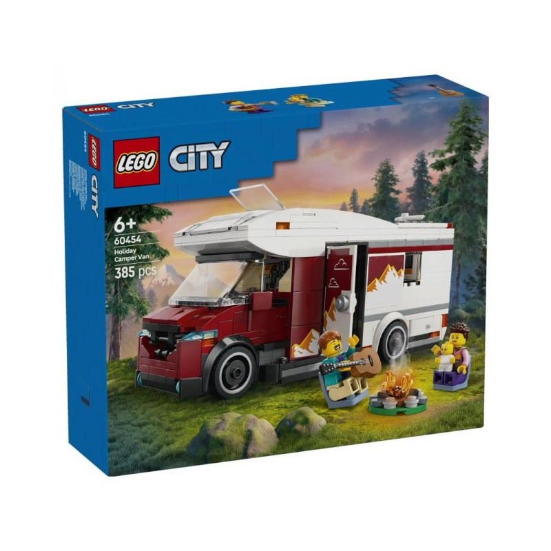 Dzięki zestawowi LEGO City Wakacyjny kamper pełen przygód (60454) dzieci mogą podróżować do wymarzonych miejsc. Ten fajny zestaw dla sześciolatków i starszych dzieci zawiera wiele realistycznych funkcji, w tym nowoczesną przestrzeń mieszkalną z kuchnią, toaletą, łóżkami piętrowymi i łóżeczkiem, stół i dwa krzesła do użytku w środku i na zewnątrz, a także zabawkową gitarę i ognisko. Wystarczy dodać minifigurki mamy i taty z dzieckiem, aby rozpocząć twórczą zabawę i opowiadanie historii.