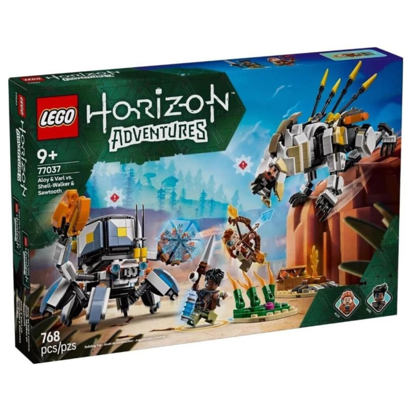 Zestaw Lego jest oparty na grze wideo Lego Horizon Adventures i zawiera dwie minifigurki: Aloy i jej lojalnego pomocnika Varla. Aloy jest uzbrojona w łuk, a Varl we włócznię. Każda broń ma ulepszenia, które można dodać, aby umożliwić atak ogniem, chłodem lub wstrząsem — tak jak w grze wideo. W zestawie znajdują się również dwa roboty do zbudowania. Krabołaz ma ruchome nogi i ramiona, otwierane szczypce oraz odłączany pojemnik i tarczę energetyczną. W pełni ruchomy piłoząb ma otwierane szczęki, obrotowy tułów oraz ruchomą szyję, głowę i nogi. Wysokie trzciny, ognisko, skrzynia ze skarbami i inne akcesoria inspirują do twórczej zabawy. Warto także zapoznać się z aplikacją LEGO Builder, która zapewnia cyfrową rozrywkę podczas budowania.
