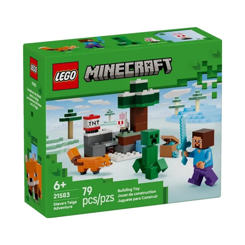 Niewielki zestaw konstrukcyjny, przeznaczony dla dzieci od 6 lat. Zestaw przenosi gracza do świata Minecraft, osadzonego w biomie tajgi, pełnym śniegu, iglastych drzew i trawy charakterystycznej dla tego środowiska. Wraz ze Steve’em dzieci mogą eksplorować teren, wydobywać diamenty, walczyć z wrogo nastawionym Creeperem oraz prowadzić różnorodne przygody inspirowane grą.