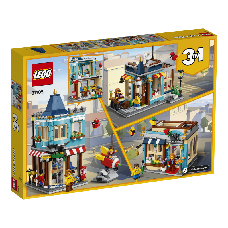 Hura! Czas wybrać się do sklepu z zabawkami! Sprawdź, czy masz przy sobie portfel, a potem ruszaj do miasta. Patrz — żołnierzyk i maszyna z gumami do żucia z klocków! Zobaczmy, jakie zabawki czekają w środku. Chociaż nie, lepiej najpierw przejedźmy się bujaną rakietą. Ziuuuu! Po zabawie przebuduj sklep z zabawkami na cukiernię lub kwiaciarnię albo uruchom wyobraźnię i zbuduj coś zupełnie nowego z tego rewelacyjnego zestawu 3 w 1! Intrygujący sklep z zabawkami w kamienicy, którą można przebudować Miłośnicy LEGO® z radością powiększą swoje miasteczko o piętrowy sklep z zabawkami z mieszkaniem na piętrze. Budynek można przebudować na cukiernię lub kwiaciarnię. Modele z zestawu LEGO® Creator 3 w 1 Sklep z zabawkami (31105) pełne są detali uwielbianych przez fanów. Młodzi konstruktorzy spędzą długie godziny na zwiedzaniu piętrowej kamienicy z mieszkaniem na piętrze i sklepem z zabawkami na parterze — a zwłaszcza na testowaniu działającej bujanej rakiety. Inspirująca swoboda tworzenia Zestaw LEGO Creator 3 w 1 umożliwia zbudowanie trzech różnych modeli do zabawy. Dzieci mogą zbudować piętrową kamienicę ze sklepem z zabawkami i przebudować ją na cukiernię z miejscem do siedzenia oraz warsztatem LEGO z tyłu albo na śliczną kwiaciarnię ze świetlikiem. Mogą też zbudować coś zupełnie nowego. Ta zabawka konstrukcyjna zachęca dzieci do pomysłowej zabawy i doskonale nadaje się na prezent świąteczny lub urodzinowy. Niepowtarzalne, samodzielne modele z mnóstwem możliwości zabawy Zestawy LEGO Creator 3 w 1 zawierają szczegółowe i realistyczne modele, które zachęcają do pomysłowej zabawy. Niezliczone możliwości budowania i zabawy pomagają rozwijać kreatywność dzieci w każdym wieku. Dzięki temu te imponujące i inspirujące zestawy dla dzieci i fanów świetnie sprawdzą się jako prezenty z dowolnej okazji.