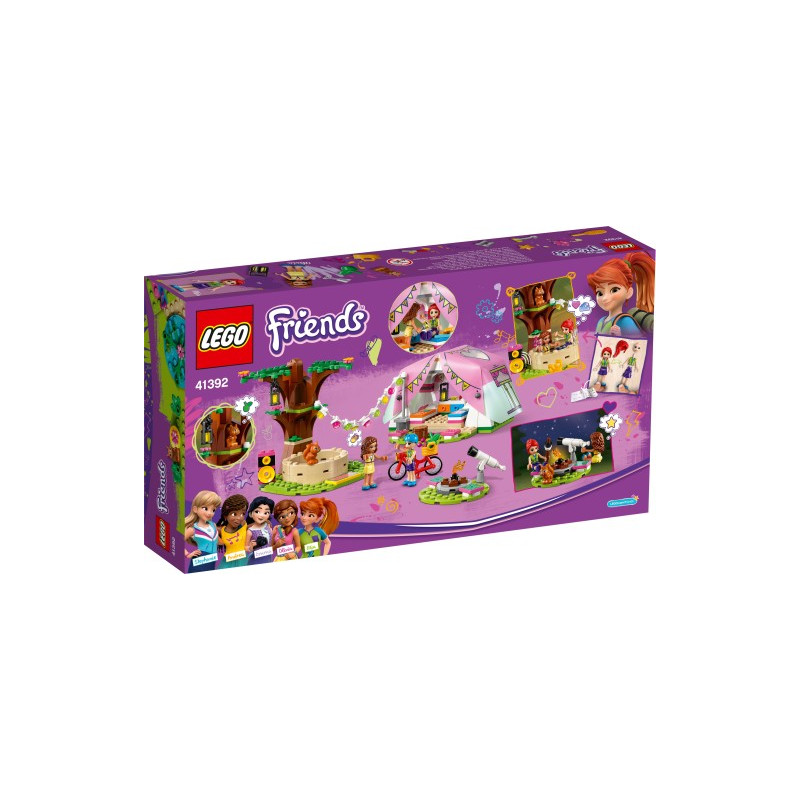 Luksusowy kemping (41392). Liczne funkcje zapewnią maluchom długie godziny świetnej zabawy. Dzieci mogą wyobrażać sobie, że jeżdżą rowerem po lesie z minilaleczkami LEGO Friends Olivią i Mią. Mogą też pobawić się z figurką wiewiórki lub udawać, że obserwują nocne niebo przez teleskop. Kemping w wielkim stylu Temu kempingowi daleko do spartańskości. W namiocie LEGO są prawdziwe łóżka, a nawet smartfon, z którego przyjaciółki mogą przesyłać zdjęcia znajomym z miasta Heartlake. Dzieciom spodoba się rozstawianie namiotu dla minilaleczek ze ślicznym dachem z miękkiego plastiku i ozdabianie kempingu girlandą światełek. A po rozstawieniu obozowiska można zrelaksować się w jacuzzi. Luksusowe instrukcje W tym zestawie dla miłośników natury nie tylko kemping jest supernowoczesny — instrukcje też! Pobierz aplikację LEGO Life i użyj funkcji Instructions PLUS, dzięki której Twój mały budowniczy może zobaczyć podgląd powstającego kempingu, a także obrócić i powiększyć model. Tak się buduje w epoce cyfrowej!